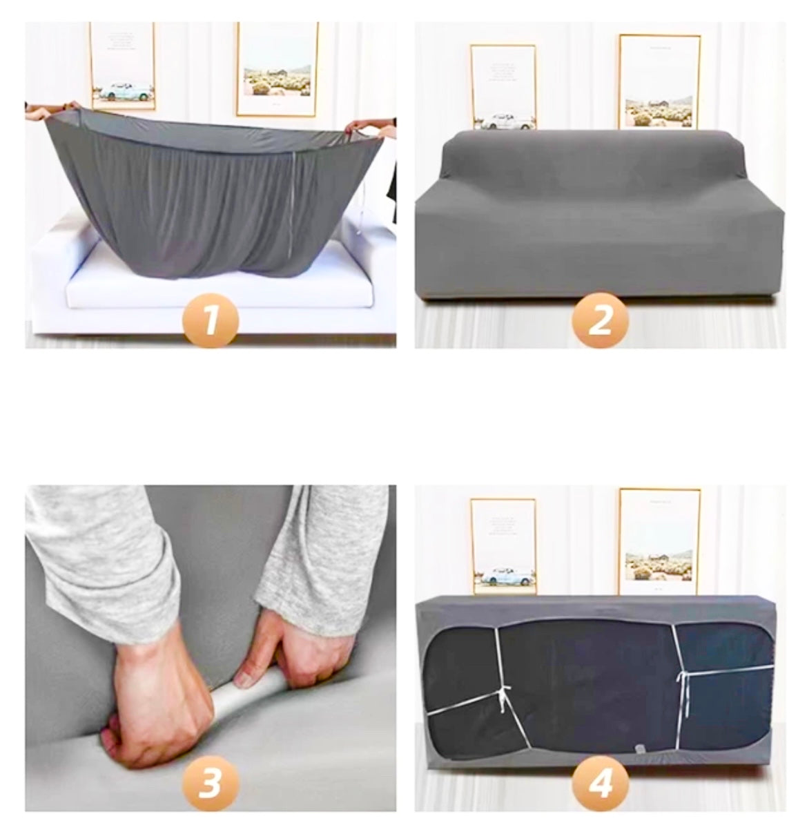Bitno je samo da namještaj ima prorez između sjedišta i naslona za leđa kako bi mogli fiksirati navlake , te se navlake dodano vežu vezicama na dnu namještaja .