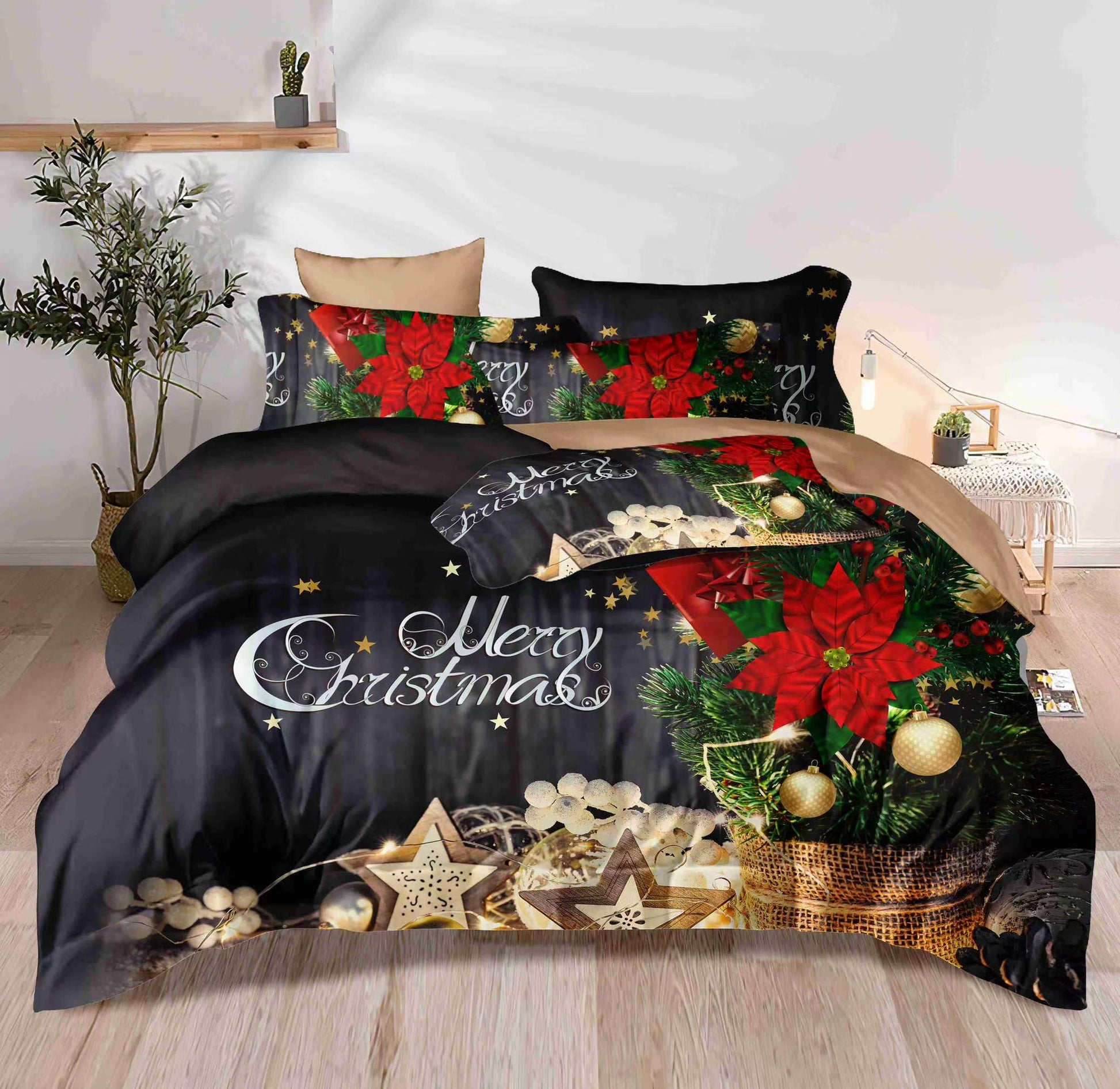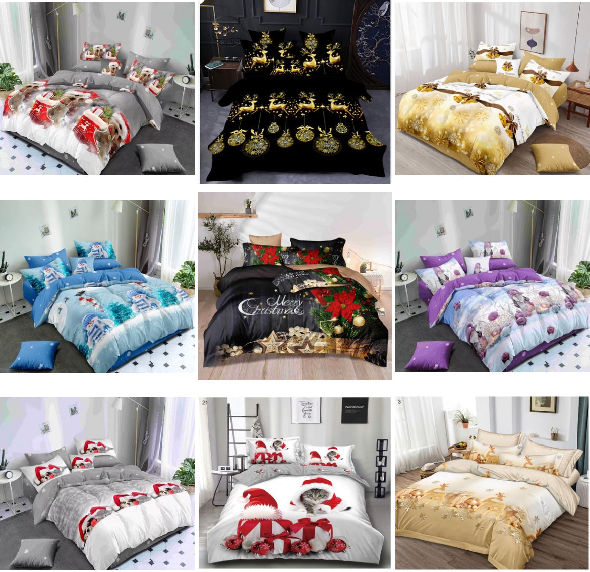 KOMPLET BOŽIĆNA POSTELJINA MAXI- komplet sadrži 1kom navlaka za poplun 200x220+2jastučnice 60x80+2jastučnice 50x50+ 1plahtu ravnu 220x240