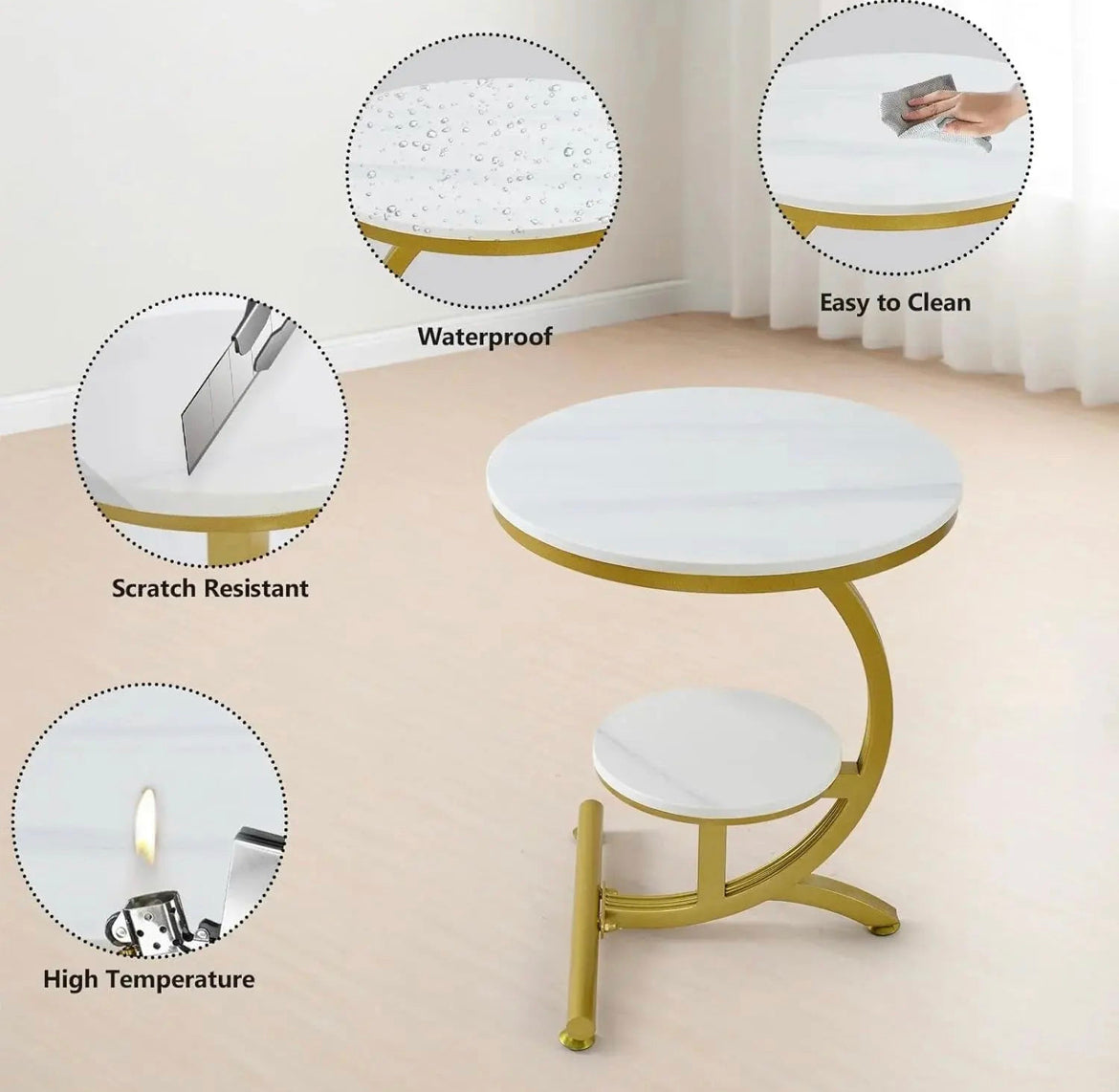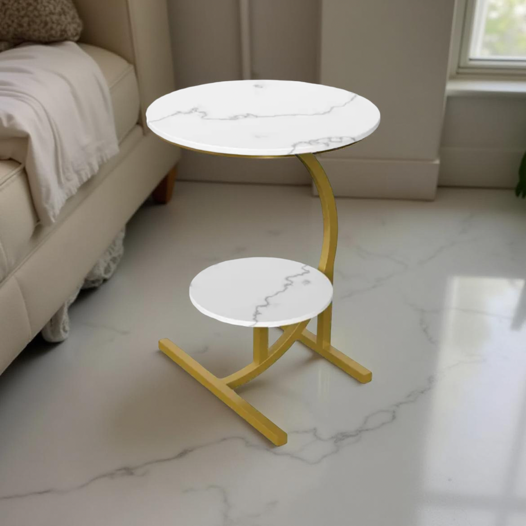 Moderan okrugli stolić SOPHI s dvostrukom površinom savršeno kombinira funkcionalnost i luksuzni dizajn. Gornja ploča promjera 60 cm nudi dovoljno prostora za posluživanje, dekoracije ili rad na prijenosniku, dok manja ploča promjera 30 cm služi kao dodatni prostor za knjige, časopise ili detalje.